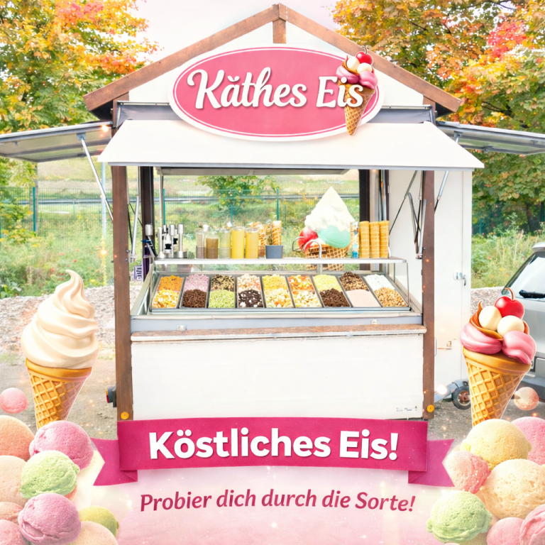 Richtig gelesen! Im Frühjahr 2026, pünktlich zur Saison, eröffnen wir unser Eislädchen. Wer Lust hat, darf uns gerne besuchen. Den täglichen Standort unseres Eiswagens teilen wir hier und in unserem Shop mit. Wenn Eis, dann „Käthes Eis“! Natürliche Zutaten, keine Paste, keine künstlichen Aromen! Fragen Sie Ihren Eishändler, ob er echte Früchte und echte Milch verwendet. Sie trauen sich nicht zu fragen? Dann kommen Sie vorbei, probieren und schmecken Sie einfach den Unterschied!